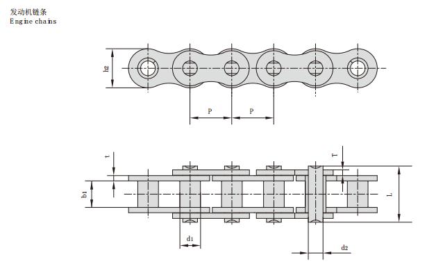 摩托車發動機靜音鏈主要型號有:鏈板組合,鏈寬,銷軸直徑,銷軸長度,孔中心到齒尖距離,鏈板高度,鏈板厚度,導向形式,片數,抗拉強度,每米長重