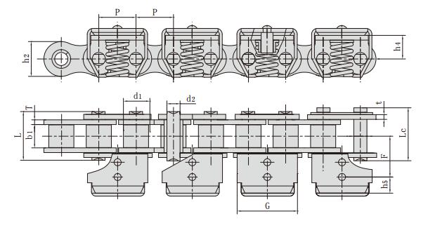 夾薄膜鏈條,夾膜鏈規格型號具體參數如下: